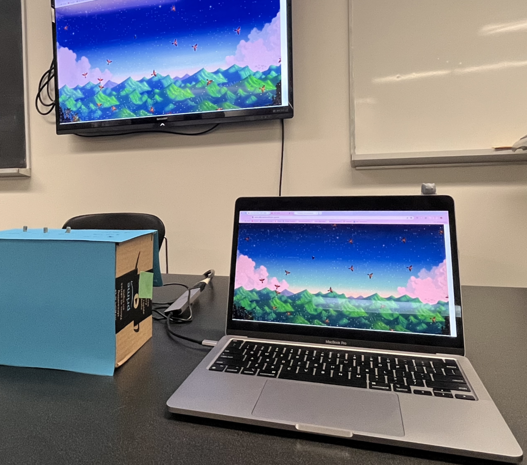 Nostalgic Noisefield is an interactive artwork that blends digital artwork, natural movement, and DIY sensibilities into a single immersive experience. The piece uses a flocking algorithm to generate bird-like forms that navigate across a digital mountainscape where order and chaos coexist. Viewers can control hue, blur, spacing, and flock size through physical potentiometers and buttons, making them active participants in shaping the system rather than passive observers. Inspired by nostalgia, analog textures, Nam Jun Paik’s soft visual style, Stardew Valley’s cozy atmosphere, and the dynamics of basketball movement, the project repurposes familiar elements into something new. It also engages with the class theme “DIY, Fix, Remake” as we repurposed many different materials and elements to be used in our project. Together, the visuals, sound, and interactivity create a calm, reflective, and playful digital environment.