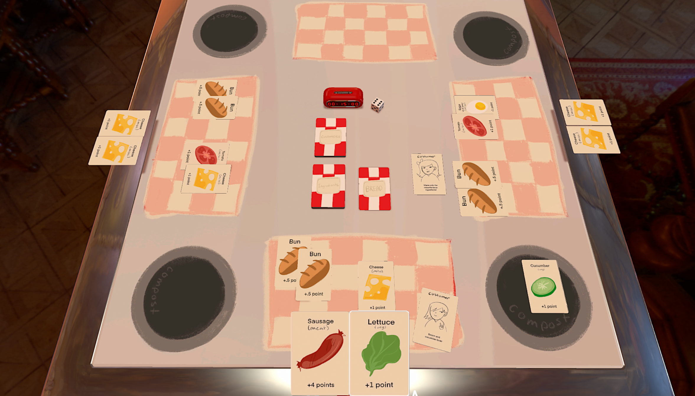 Sandwich Dilemma is a card game set in Tabletop Simulator which is inspired by the fast paced food industry environment, This game requires each player to choose a strategic outcome by making your sandwich based on the preferences of each new customer. The more ingredients you have chanced across, the more likely you are to win over the customer! However, each customer is different so make sure your cards align with customer needs and don’t upset them, or else you will lose your points. Each playthrough is limited to 15 minutes.