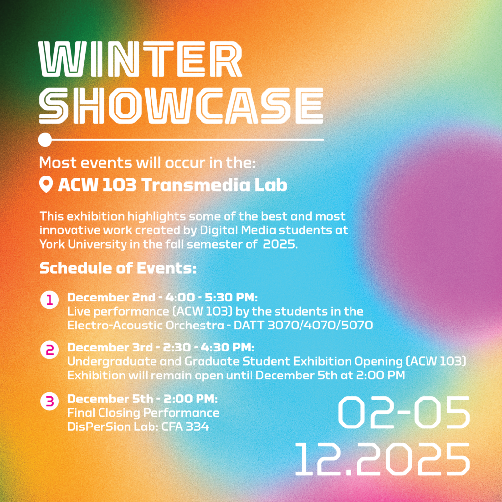 The Winter Showcase highlights some of the best and most innovative work created by Digital Media students at York University in the fall semester 2025,